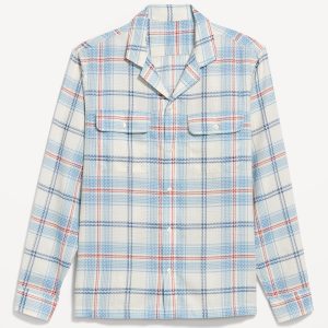 Lightweight Plaid Pocket Shirt: notched collar, long sleeves, button-flap chest pockets, full-button front, plaid print, #762451