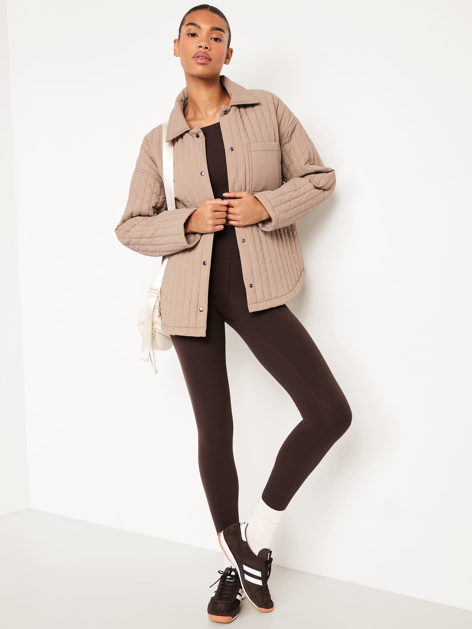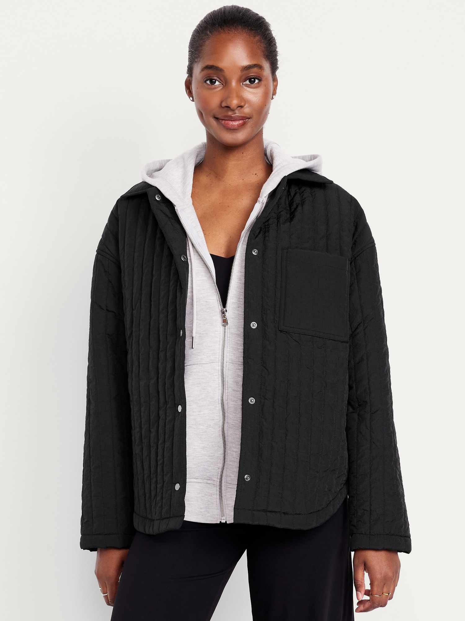 Lightweight Water-Resistant Quilted Jacket: spread collar, long sleeves, snap front, patch chest pocket, fully lined, #784480
