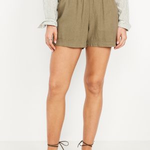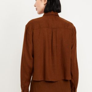 Linen-Blend Button-Down Crop Shirt