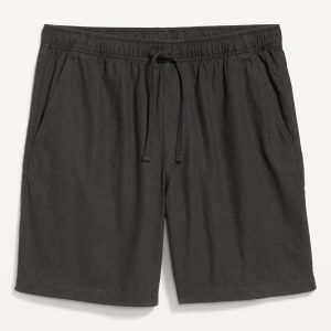 Linen-Blend Jogger Shorts — 7-inch inseam: elastic-drawstring waistband, diagonal hip pockets, back right welt pocket, #695576