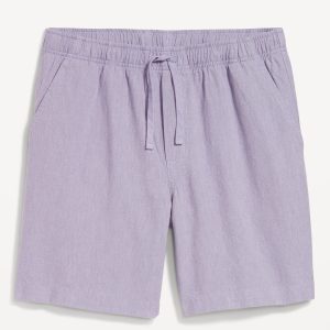 Linen-Blend Jogger Shorts — 7-inch inseam: elastic-drawstring waistband, diagonal hip pockets, back right welt pocket, #695576