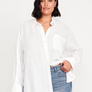 Linen-Blend Loose Button-Down Shirt