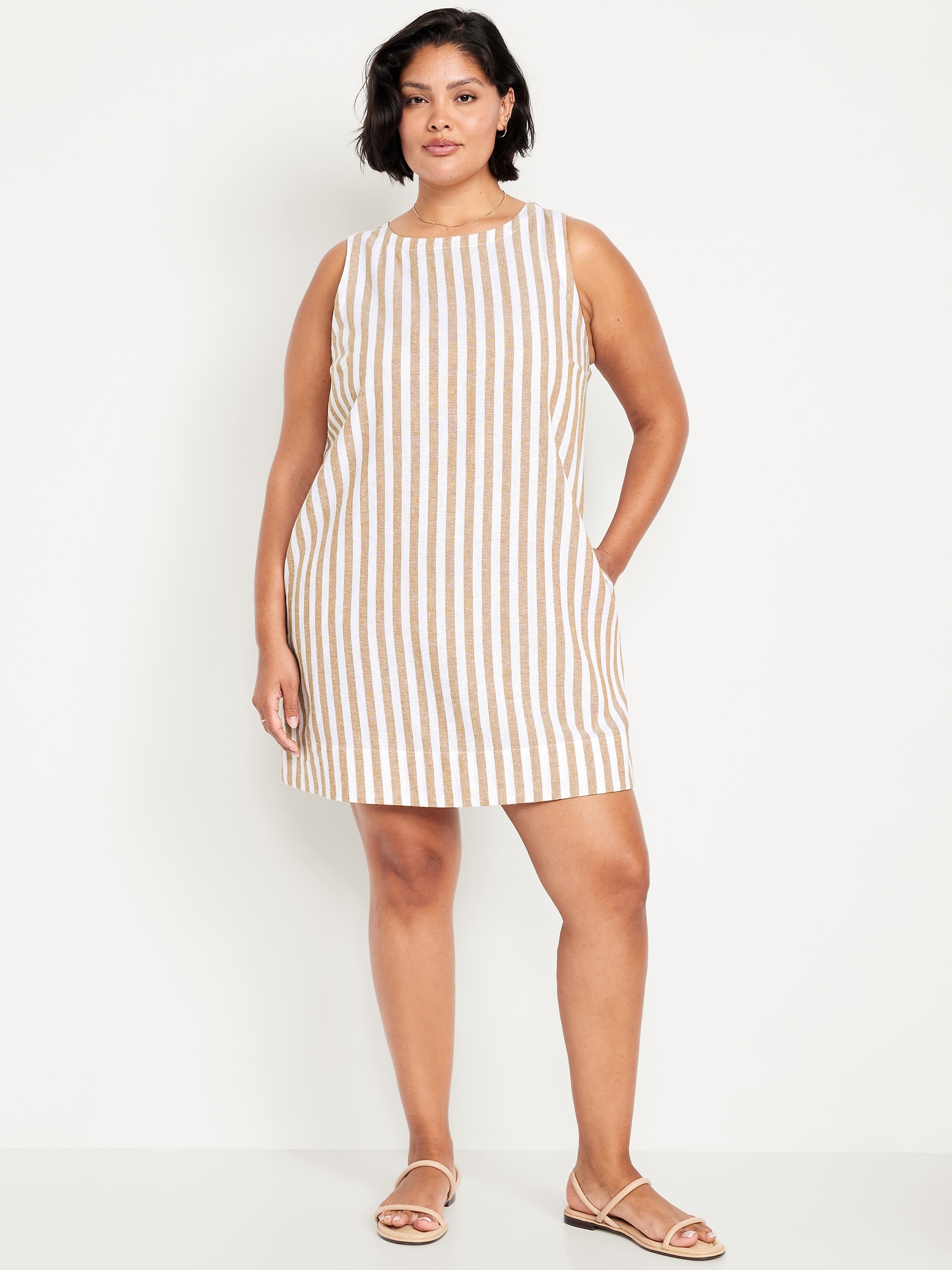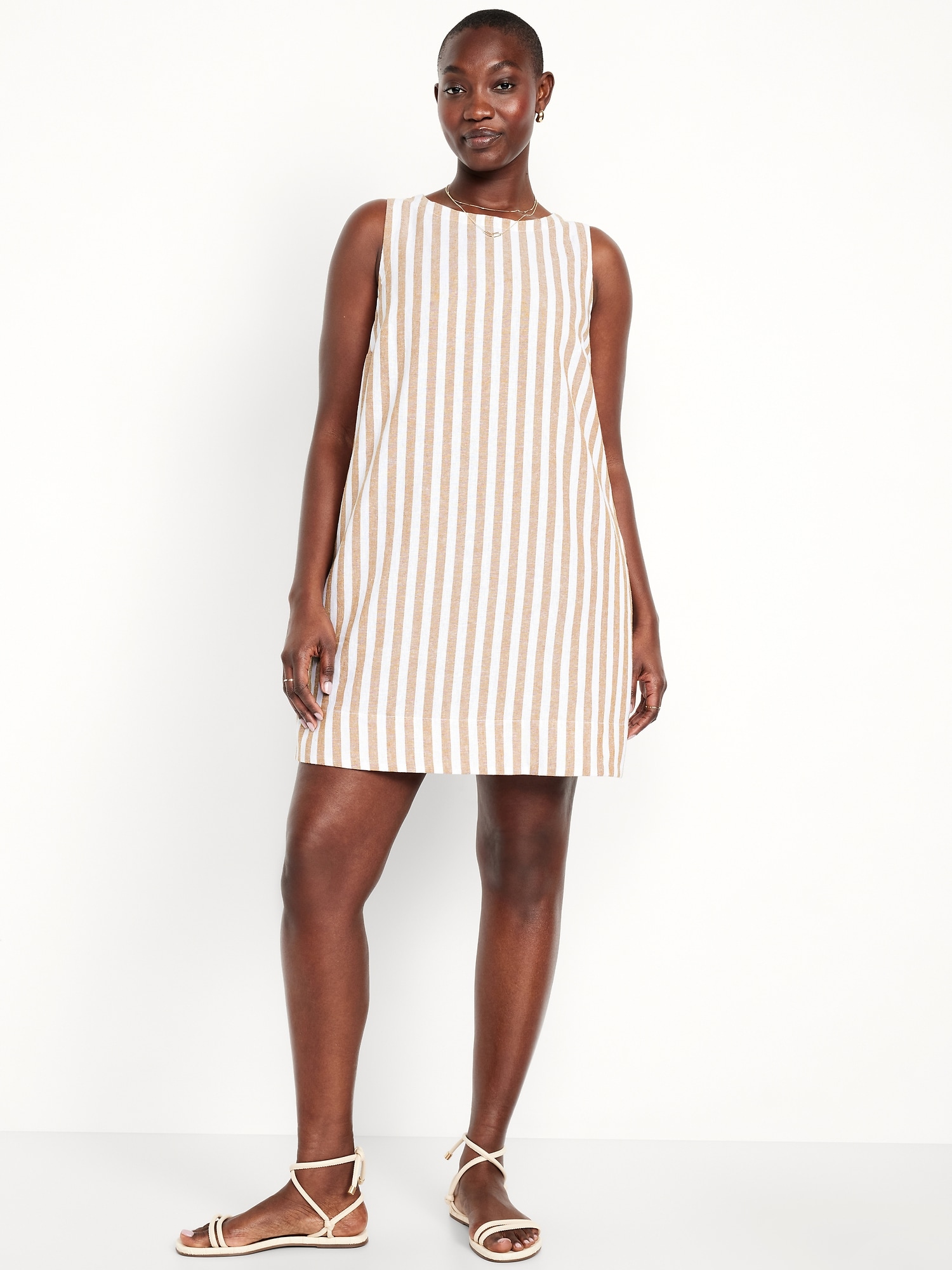 Linen-Blend Mini Shift Dress