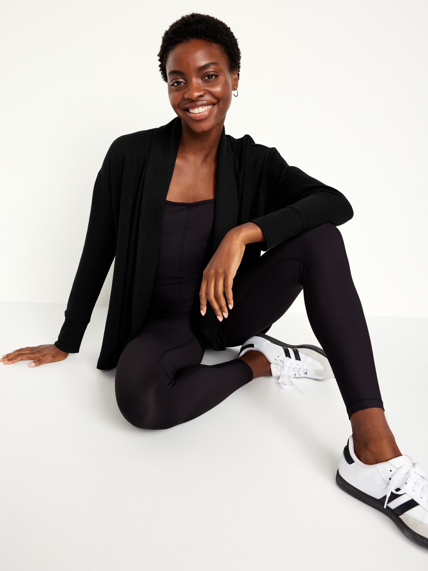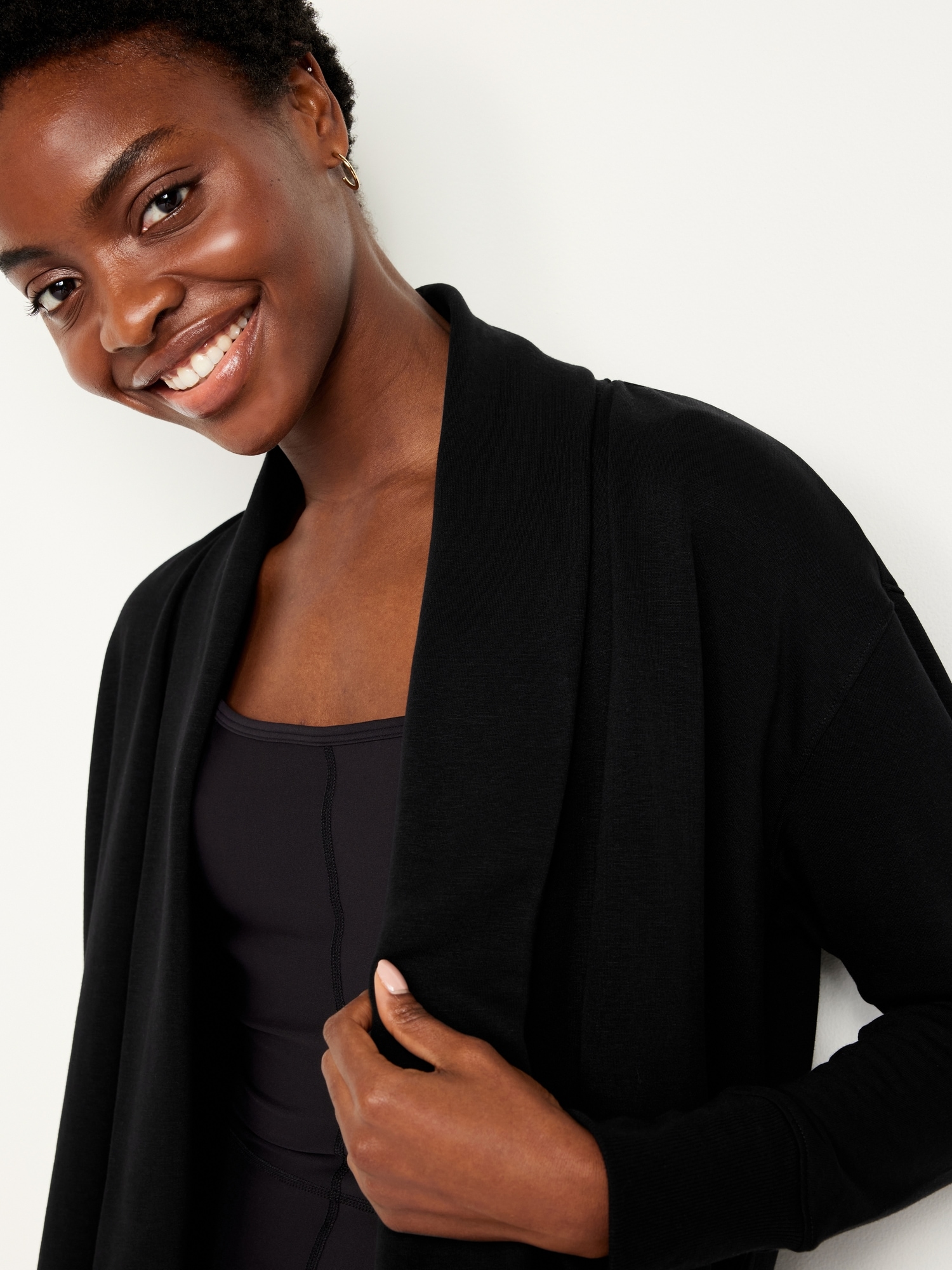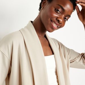 Live-In Open-Front Wrap: open front, long drop-shoulder sleeves, rib-knit cuffs, #412150