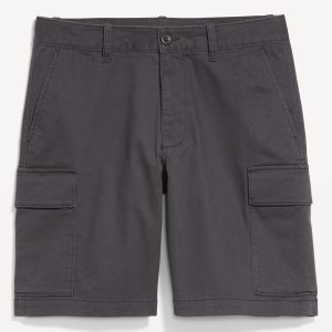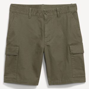 Lived-In Cargo Shorts — 9-inch inseam: button front, belt loops, zip fly, diagonal front pockets, back welt pockets, flap-cargo pockets at thigh, #695513