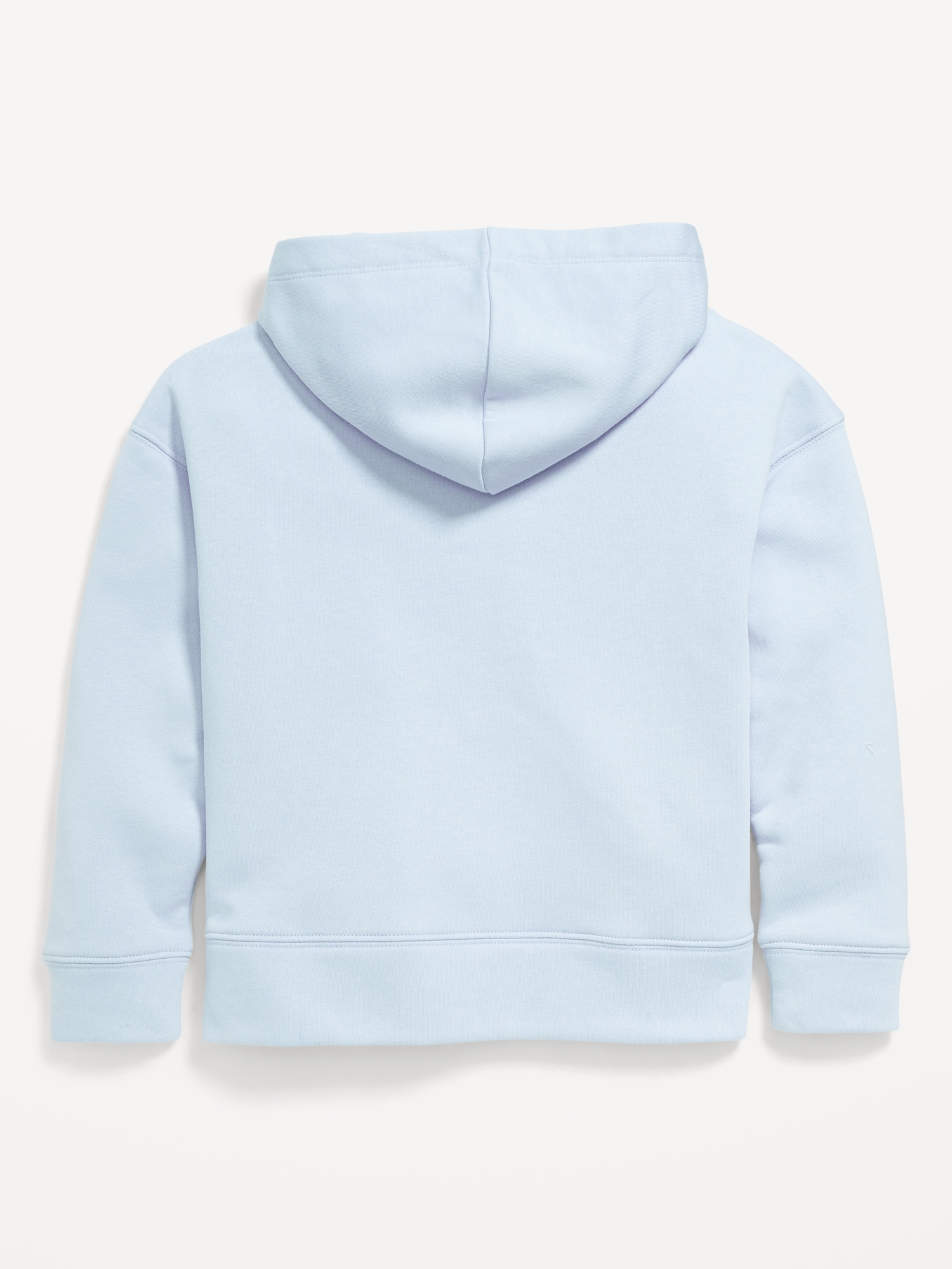 Logo-Graphic Zip Hoodie for Girls: built-in hood, long sleeves, full-length front zipper, embroidered logo graphic, banded hem, #871012
