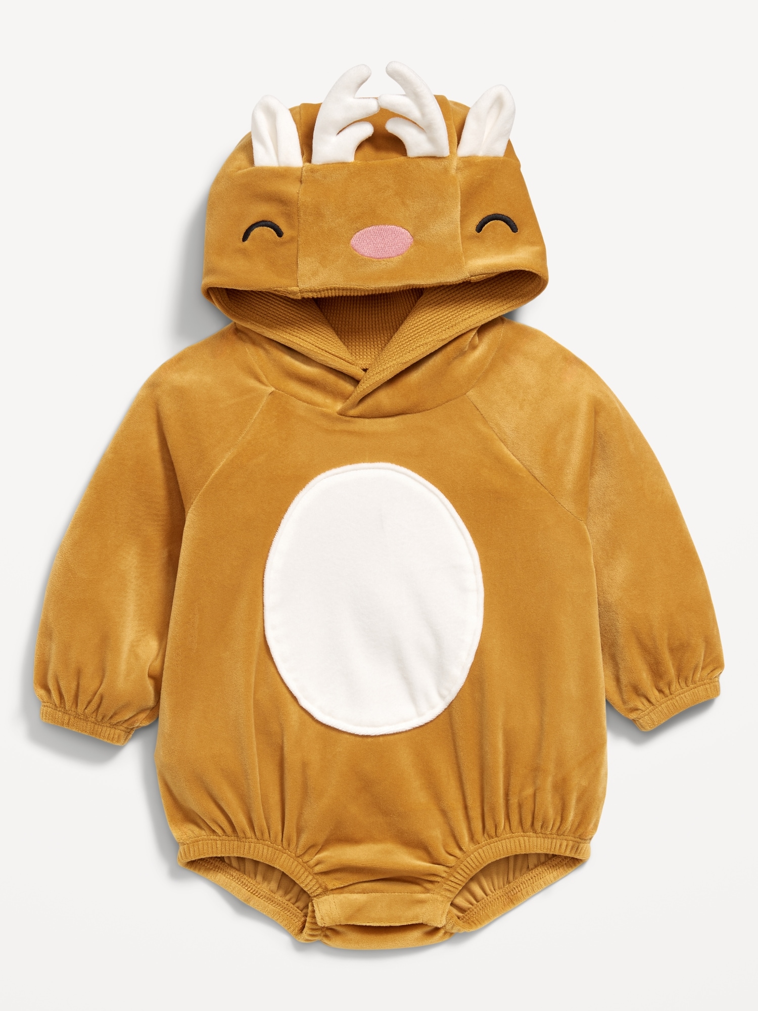 Long-Sleeve Critter Velour One-Piece Romper for Baby: built-in hood, baby chick features at crown, long sleeves, elasticized bubble leg openings, hidden snaps at inseam, #802684