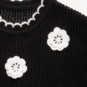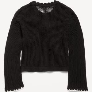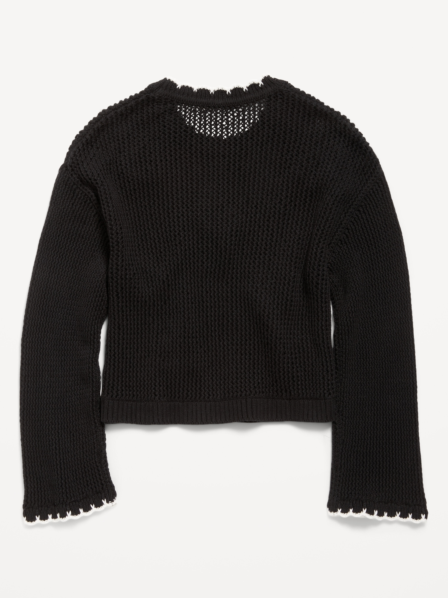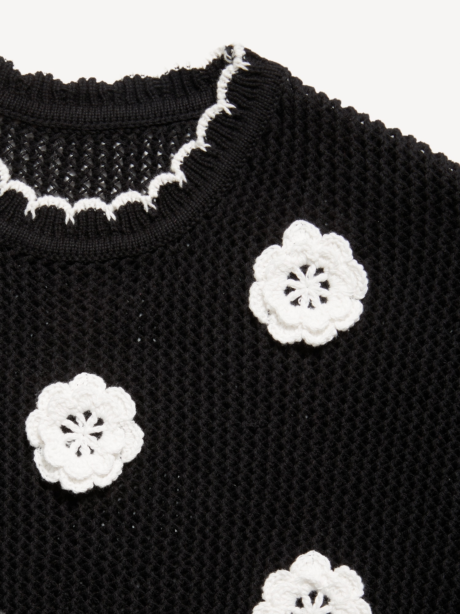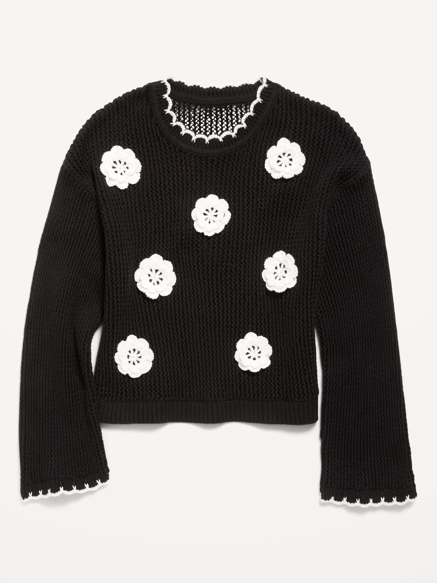 Long-Sleeve Crochet-Floral Sweater for Girls