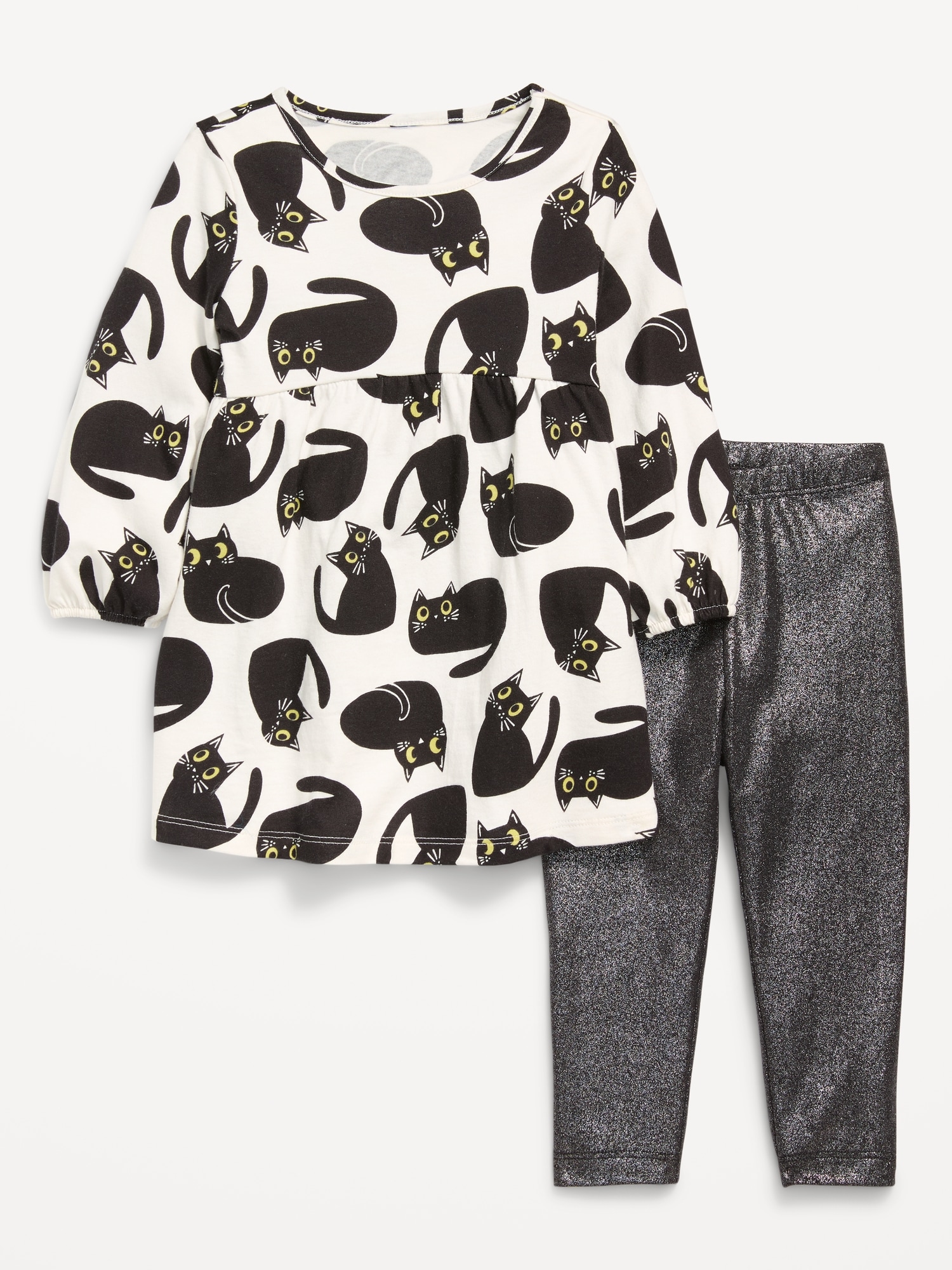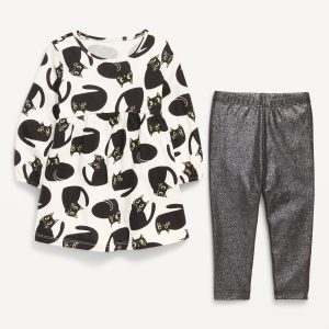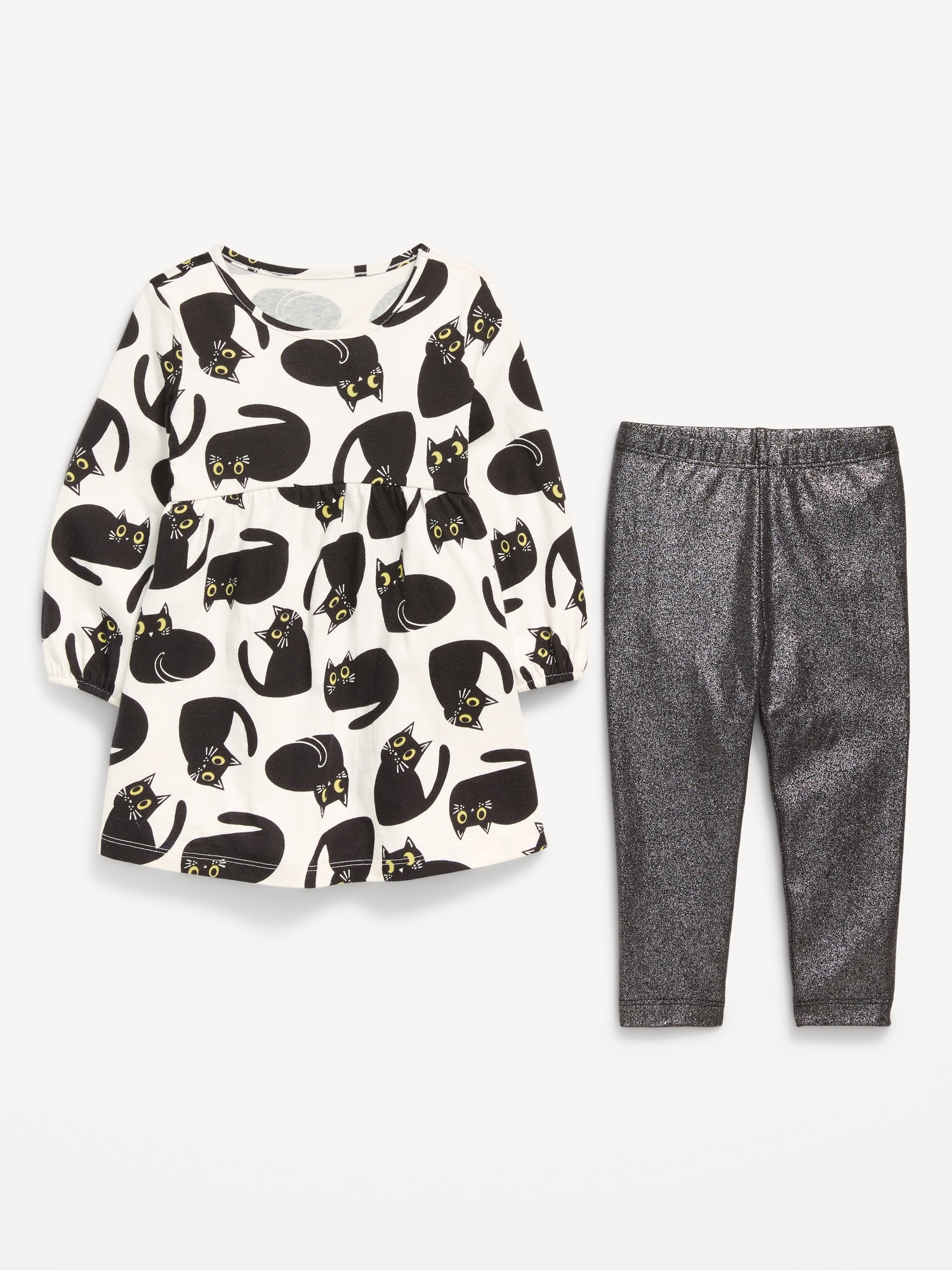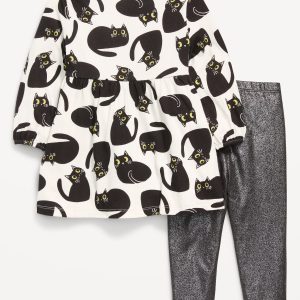 Long-Sleeve Dress and Leggings Set for Toddler Girls