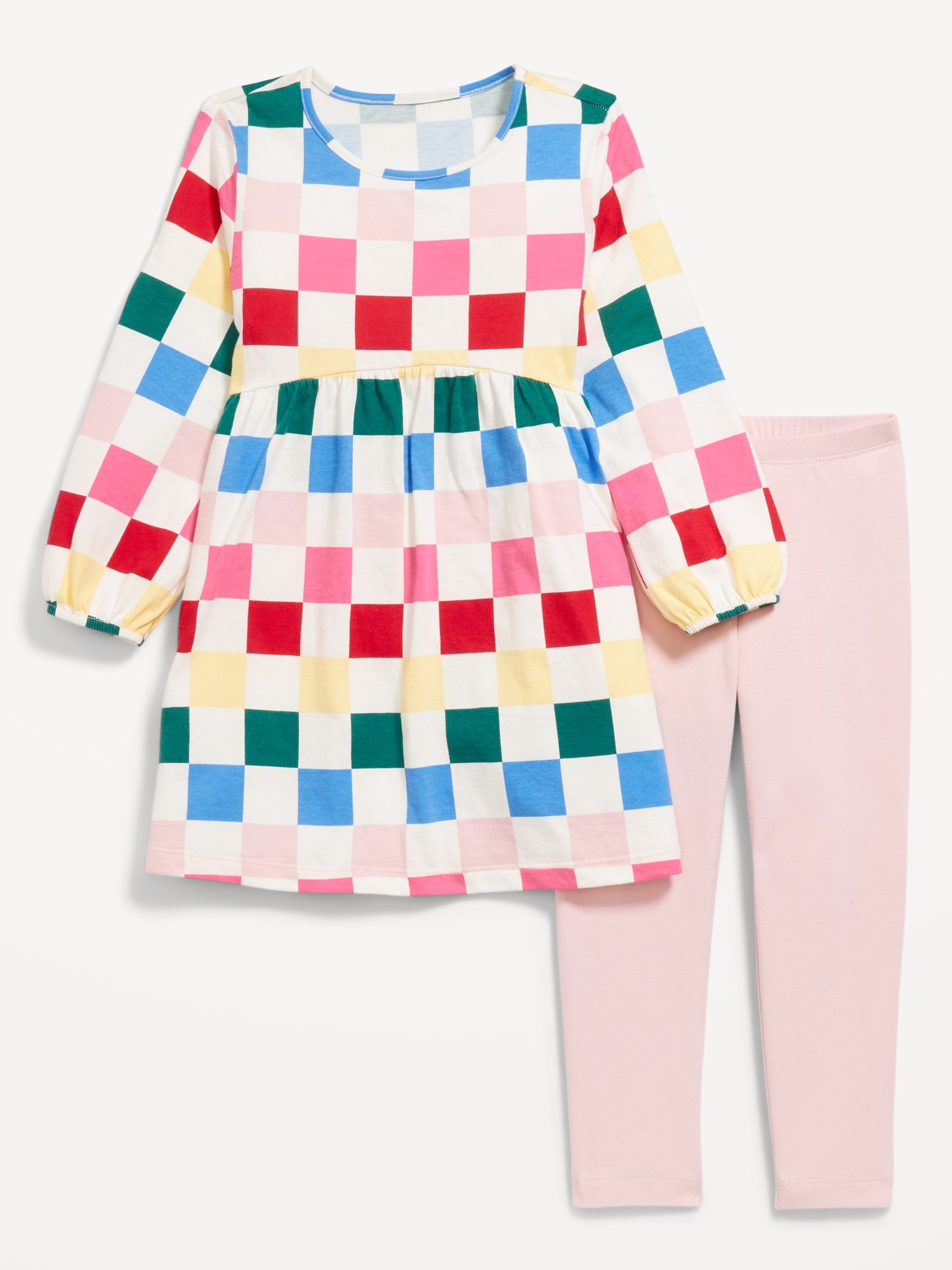 Long-Sleeve Dress and Leggings Set for Toddler Girls: Mix Match Go Productcrew neck, long puffy sleeves, flared skirt, coordinating leggings, elasticized waistband, #766994