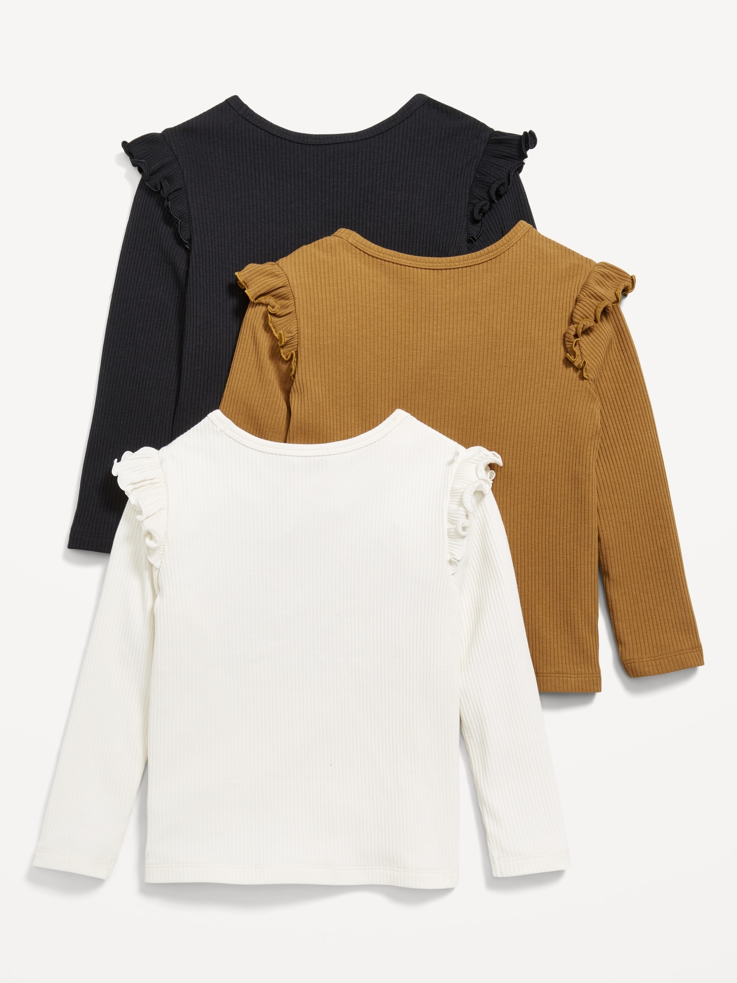 Long-Sleeve Ribbed Ruffle-Trim T-Shirts 3-Pack for Toddler Girls: round neckline, long sleeves, ruffled overlay at shoulders, online exclusive, #801013