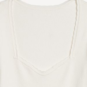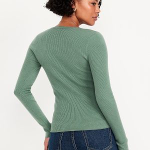 Long-Sleeve Ribbed Sweater: sweetheart neckline, long sleeves, pullover style, #576694