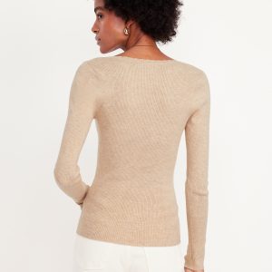 Long-Sleeve Ribbed Sweater: sweetheart neckline, long sleeves, pullover style, #576694