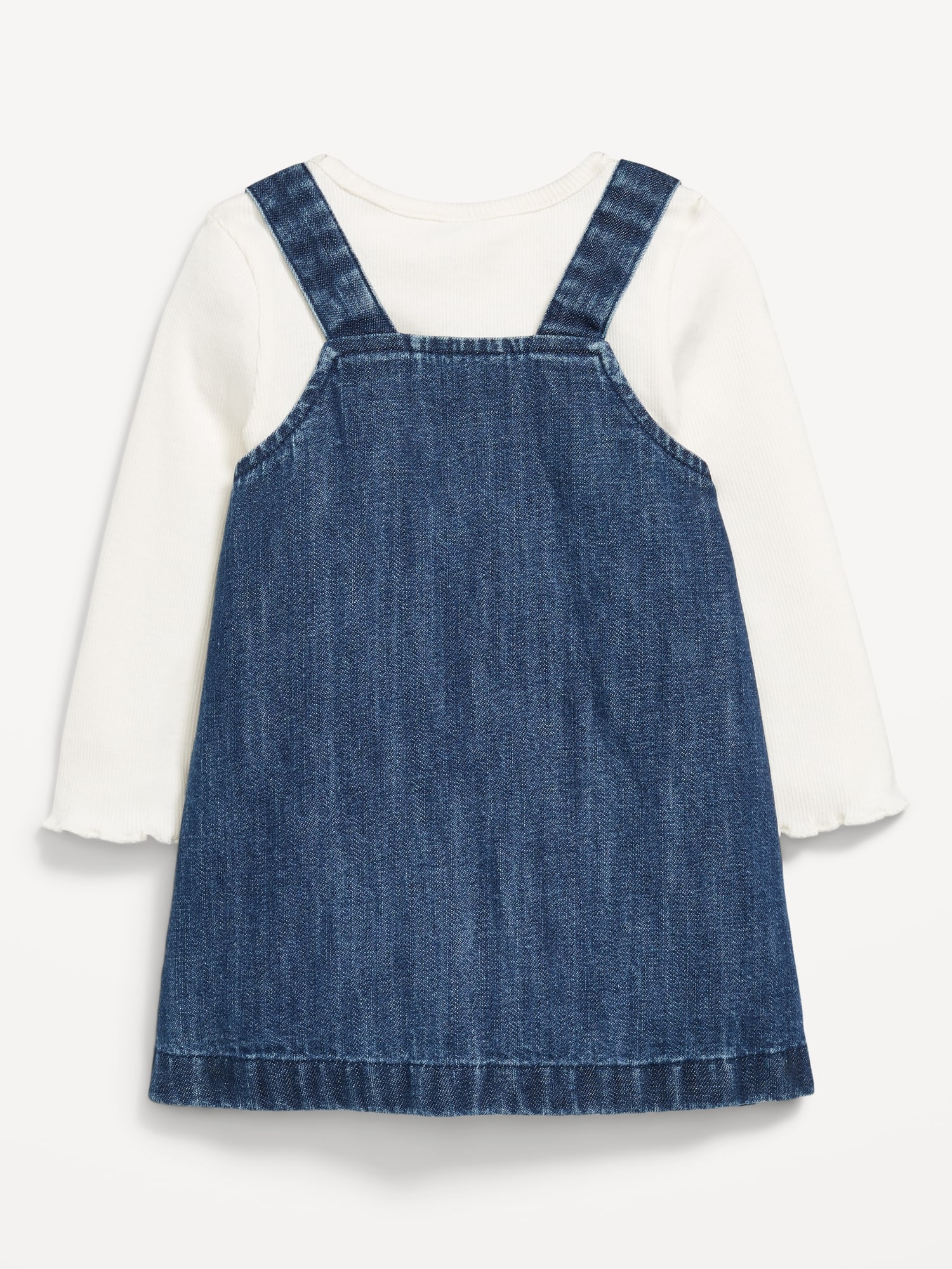 Long-Sleeve Ribbed T-Shirt and Chambray Dress Set for Baby