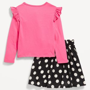 Long-Sleeve Ruffle T-Shirt and Skirt Set for Toddler Girls