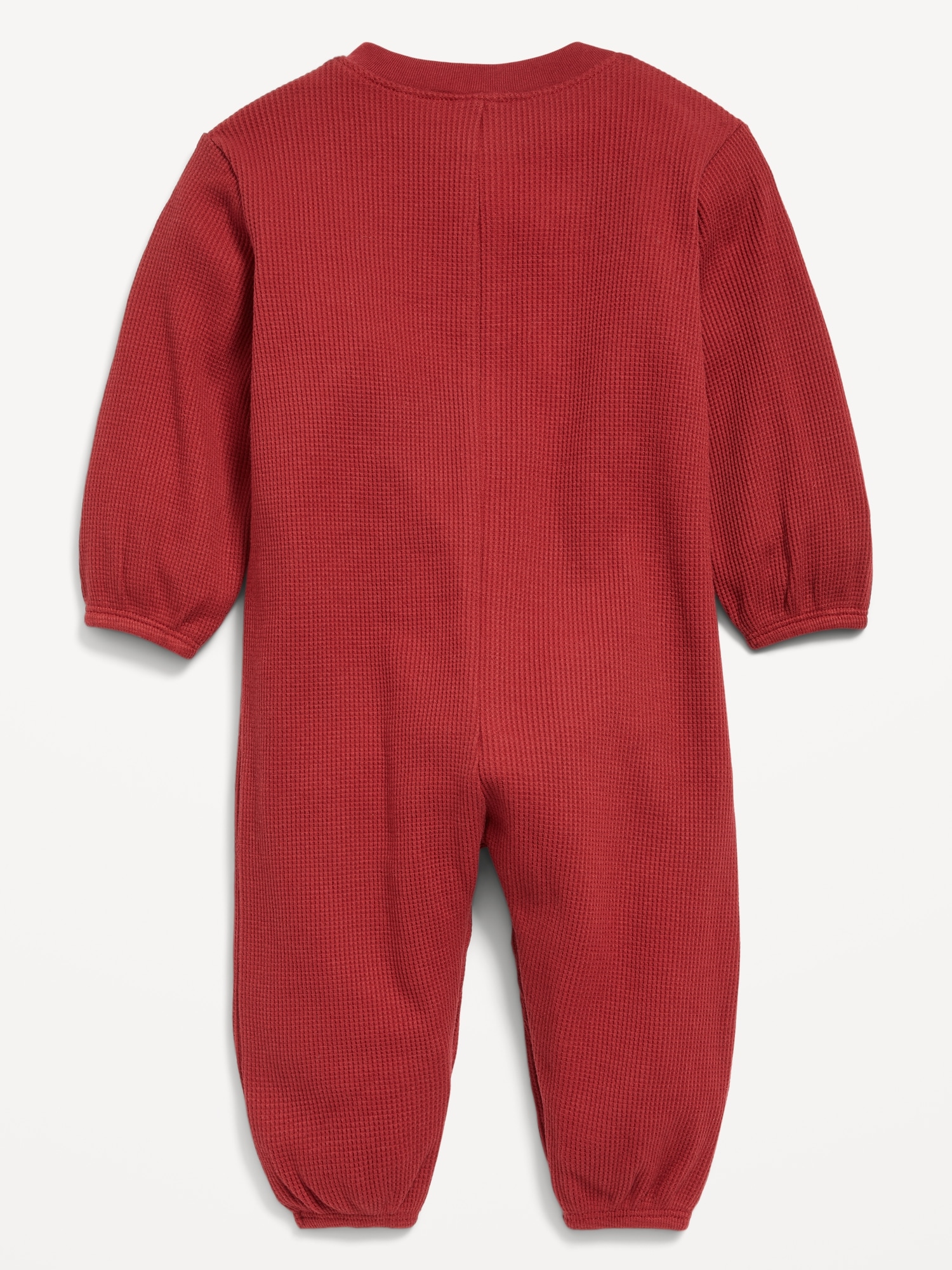 Long-Sleeve Waffle-Knit Henley One-Piece for Baby: crew neck, two-button henley placket, long sleeves, hidden snaps along inseam, #804450