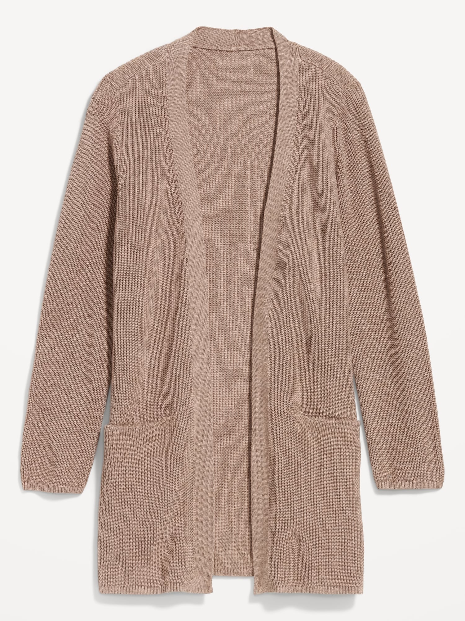 Longline Open-Front Sweater: long sleeves, patch pockets, vented sides, #784424