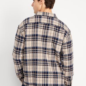 Loose Fit Plaid Pocket Shirt: spread collar, long sleeves with buttoned cuffs, full-button front, patch chest pocket, plaid print, #762448