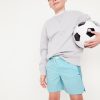 Loose Pull-On Cargo Tech Taper Pants for Boys: Elasticized waistband, with adjustable drawstirng., Faux fly., Diagonal on-seam hip pockets; vertical zippered pocket at left thigh; welt pocket at back right, with hidden zippered closure., Tapered rolled-cuff leg openings., Soft, quick-drying cotton/nylon twill., Engineered with innovative Built-In Flex stretch technology. Equal parts comfort & movement. Flexin’ on ’em., Easy pull-on style., Go-Dry moisture-wicking technology keeps him dry & comfortable., #875621