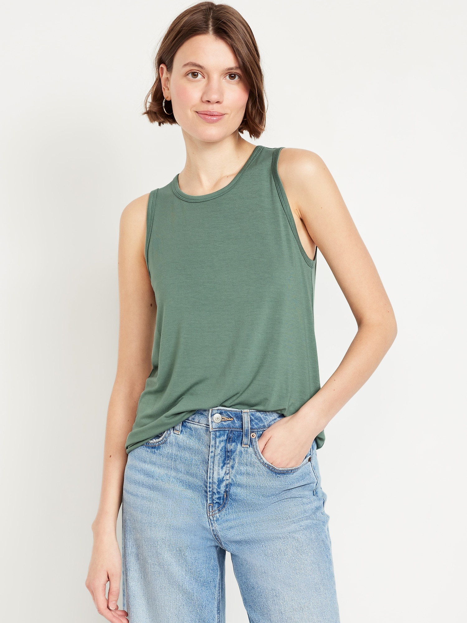 Luxe Sleeveless Top: A draped, flawless fit that’s ultra soft.crew neck, sleeveless, rib-knit trim, #790940