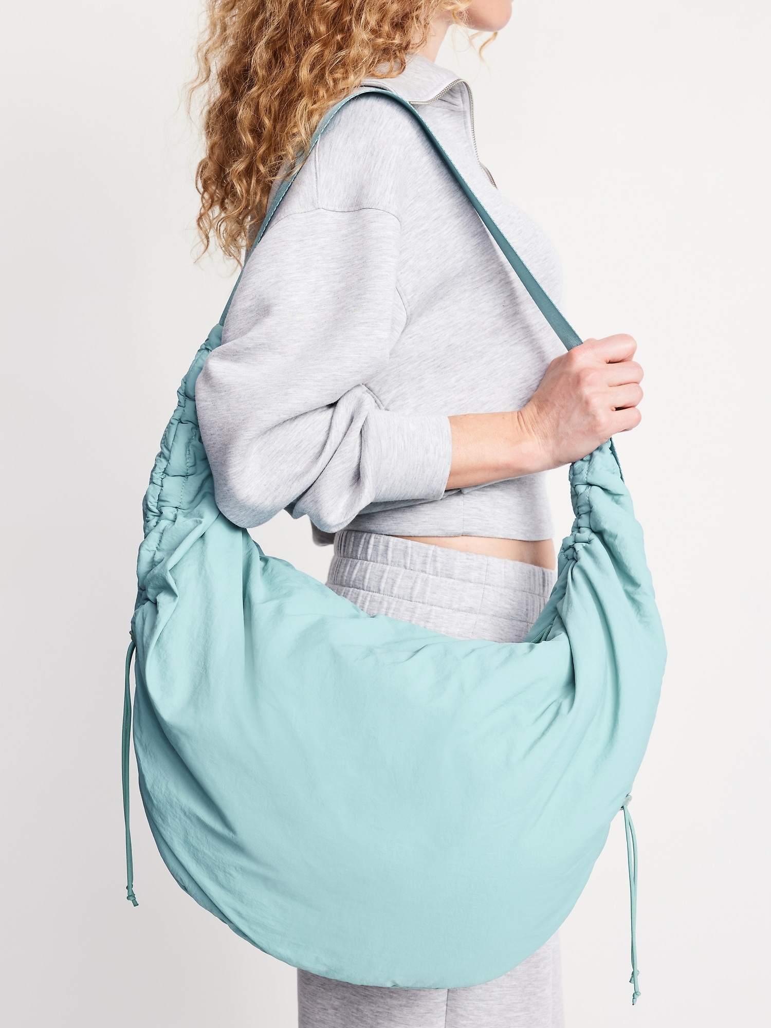 Macro Trek Bag: zip top closuredrawstring detail at sides, adjustable shoulder strap, #761651