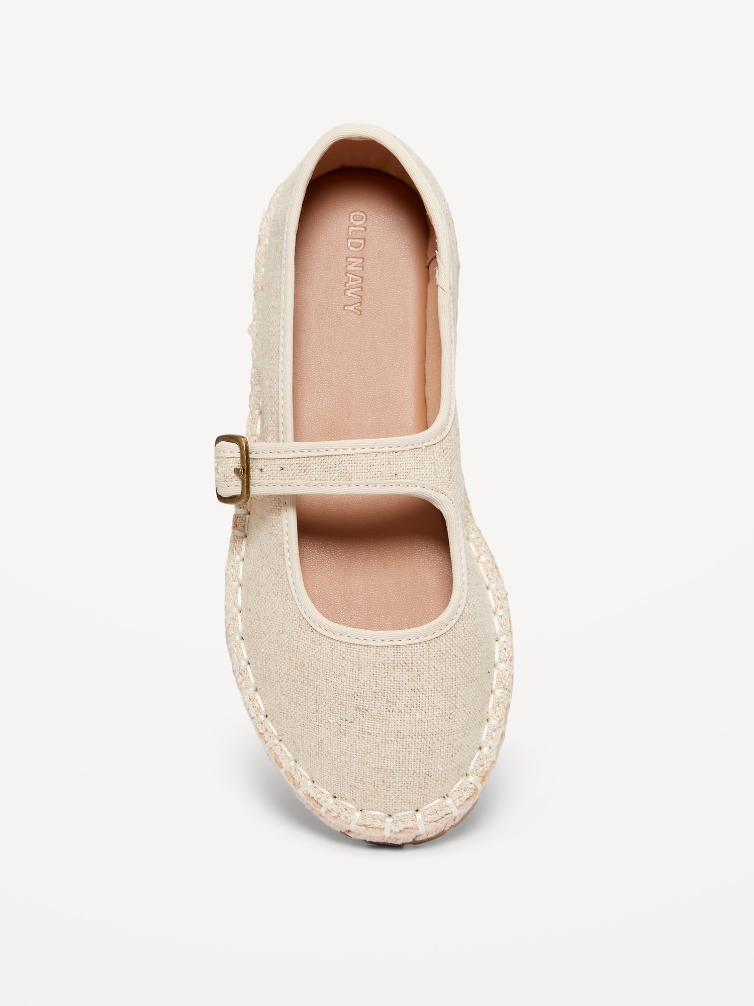 Mary-Jane Espadrille Flats for Girls: buckled mary jane strap across foot, cushioned foot bed, woven midsole, #693277