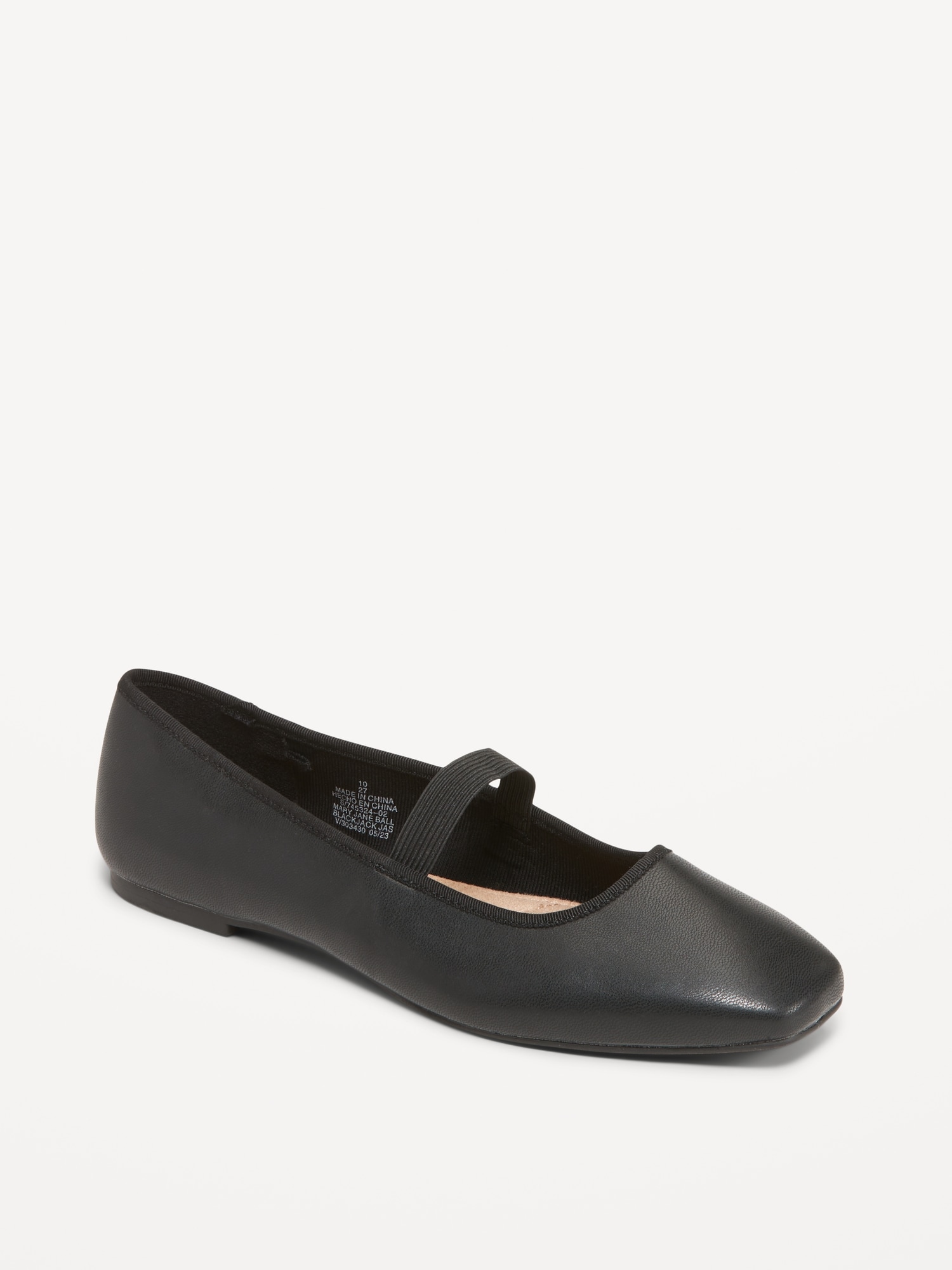 Mary Jane Square-Toe Ballet Flats: square toe, soft upper, elastic at top, #745324