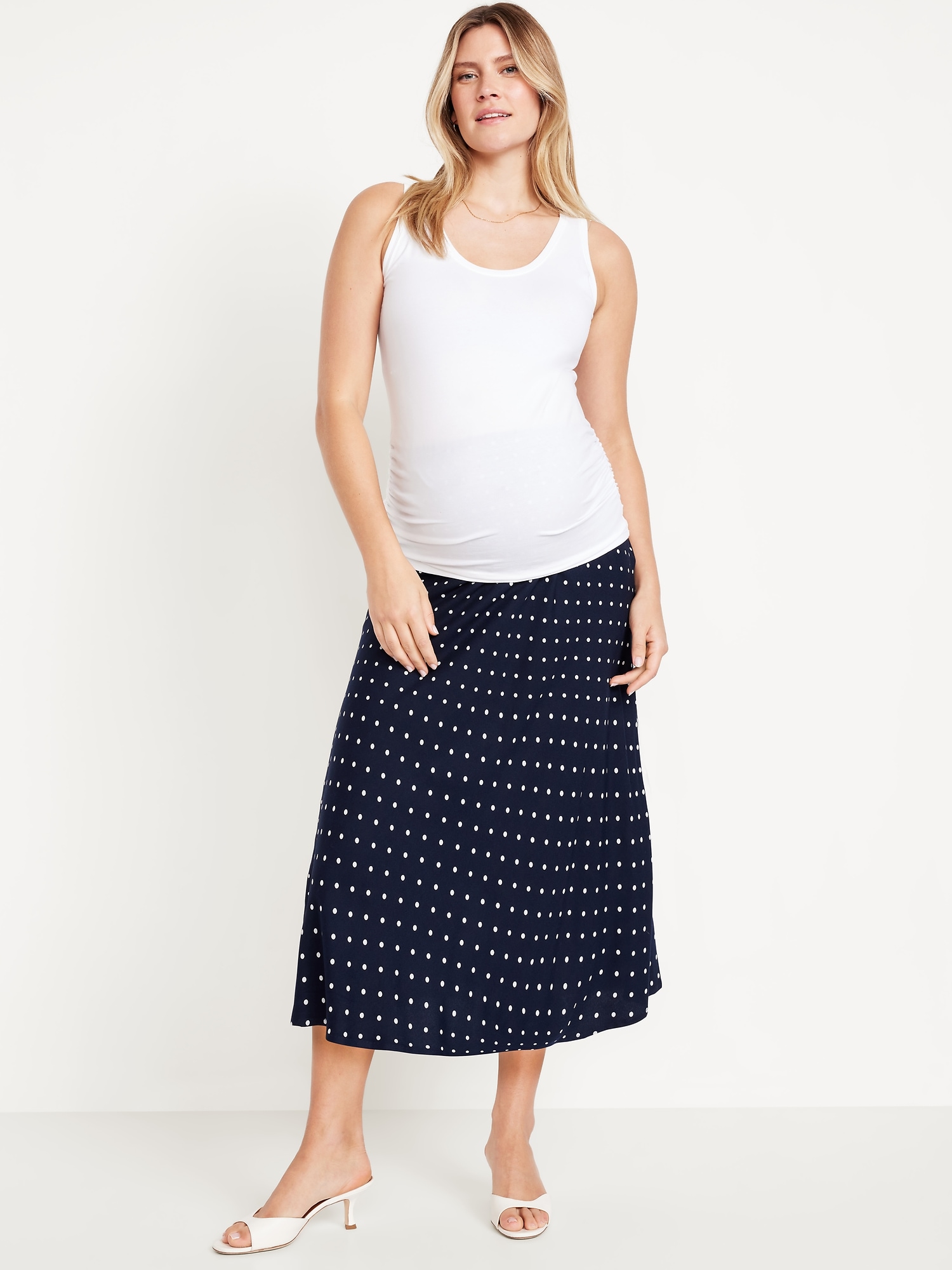 Maternity A-Line Midi Skirt: perfect for baby shower, elastic waistband, easy pull-on style, #719598