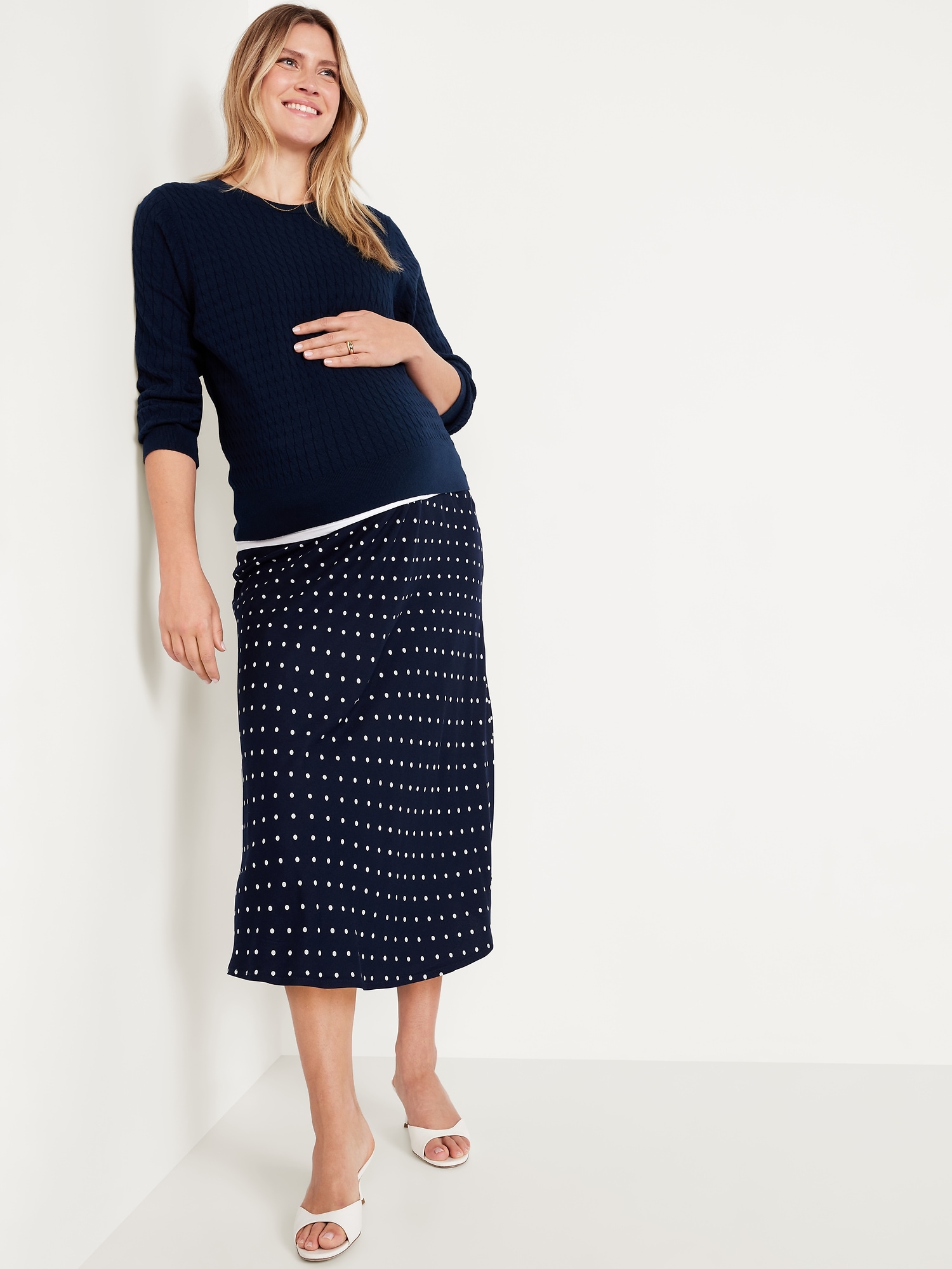Maternity A-Line Midi Skirt: perfect for baby shower, elastic waistband, easy pull-on style, #719598