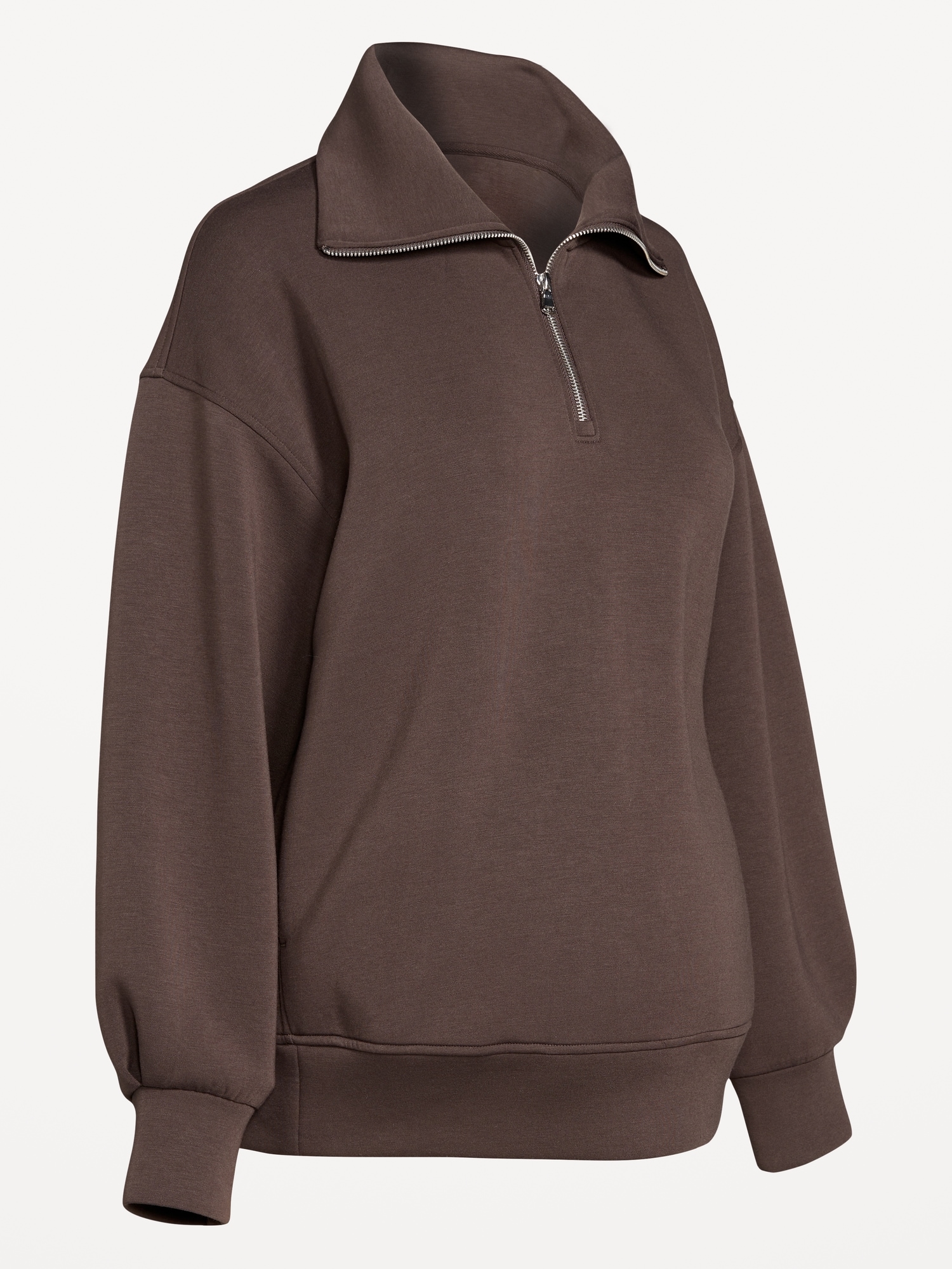Maternity Bounce Fleece Half-Zip Pullover: Featuring Bounce Fleece. A smooth, cooling finish that feels good and looks chic everywhere you go.half-zip funnel neck, long drop-shoulder sleeves with pleated cuffs, on-seam pockets, easy pullover style, breathable, #826400