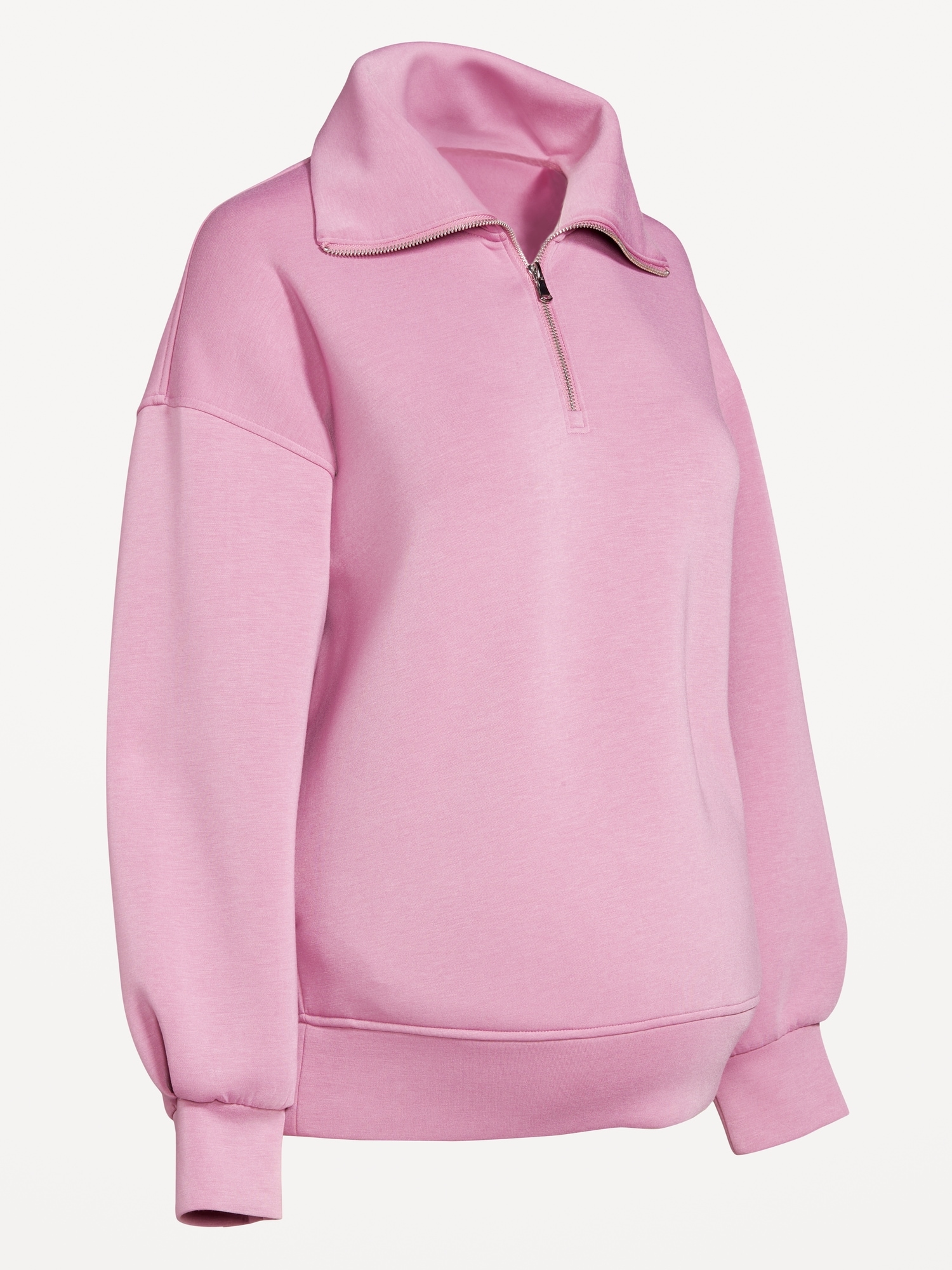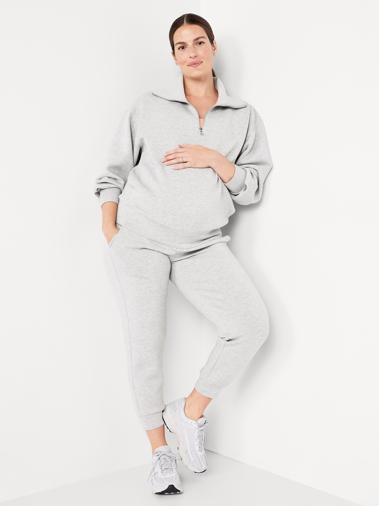 Maternity Bounce Fleece Half-Zip Pullover: Featuring Bounce Fleece. A smooth, cooling finish that feels good and looks chic everywhere you go.half-zip funnel neck, long drop-shoulder sleeves with pleated cuffs, on-seam pockets, easy pullover style, breathable, #826400