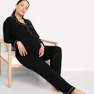 Maternity Classic Pajama Set: set includes pajama shirt and matching pants, notched collar, long sleeves, three-button popover placket, patch chest pocket, foldover-waist pajama pants for pull-on styling, #601460