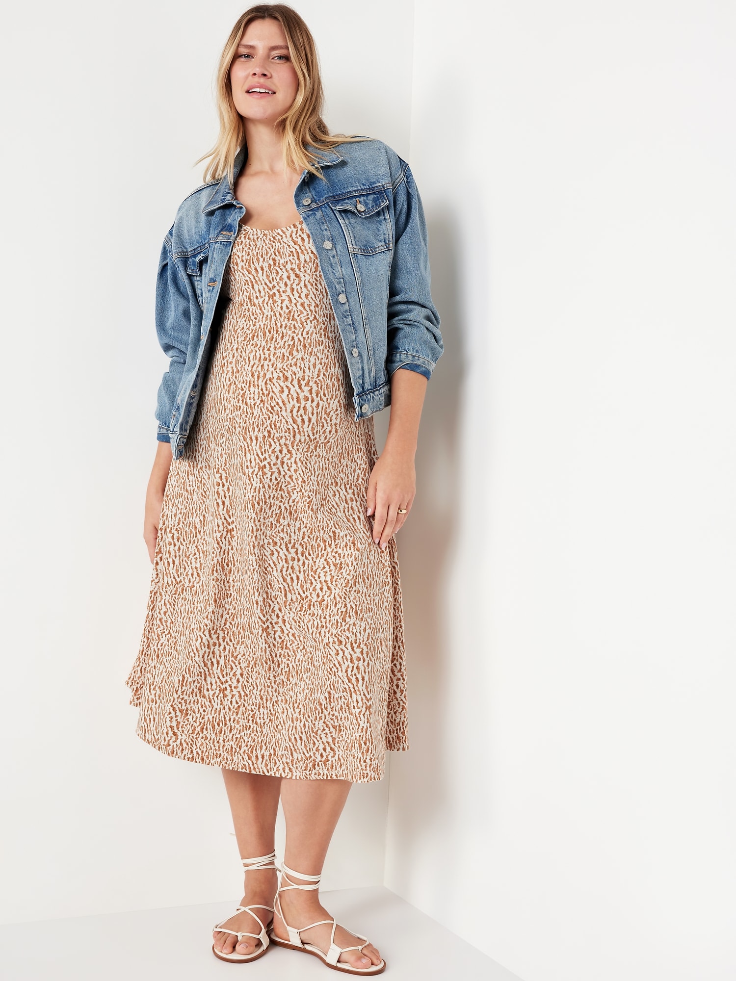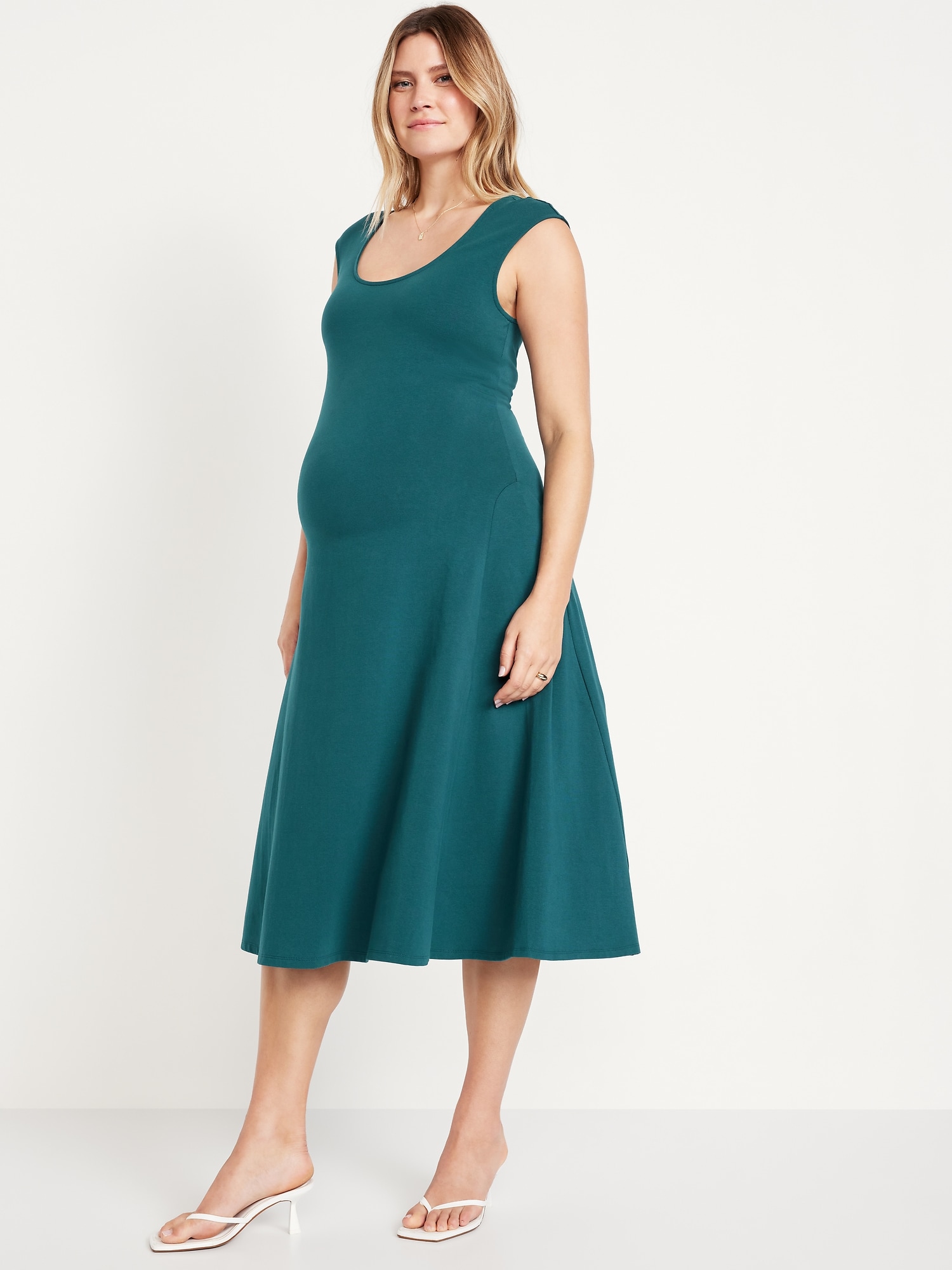 Maternity Fit & Flare Midi Dress: perfect for baby shower, scoop neck, sleeveless, #719636