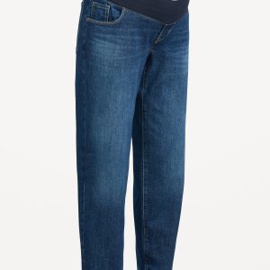 Maternity Front Low-Panel OG Loose Jeans: Meet our maternity OG Loose Jeans. Part ‘90s nostalgia, part new-normal comfort.elastic jersey front panel, regular waistband in back, faux fly, scoop pockets at front, patch pockets at back, #578770
