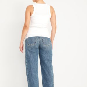 Maternity Full Panel Barrel Jeans: The effortless curved shape that’s so hot right now.full panel waistband, faux fly, barrel leg, scoop pockets, back patch pockets, #826440