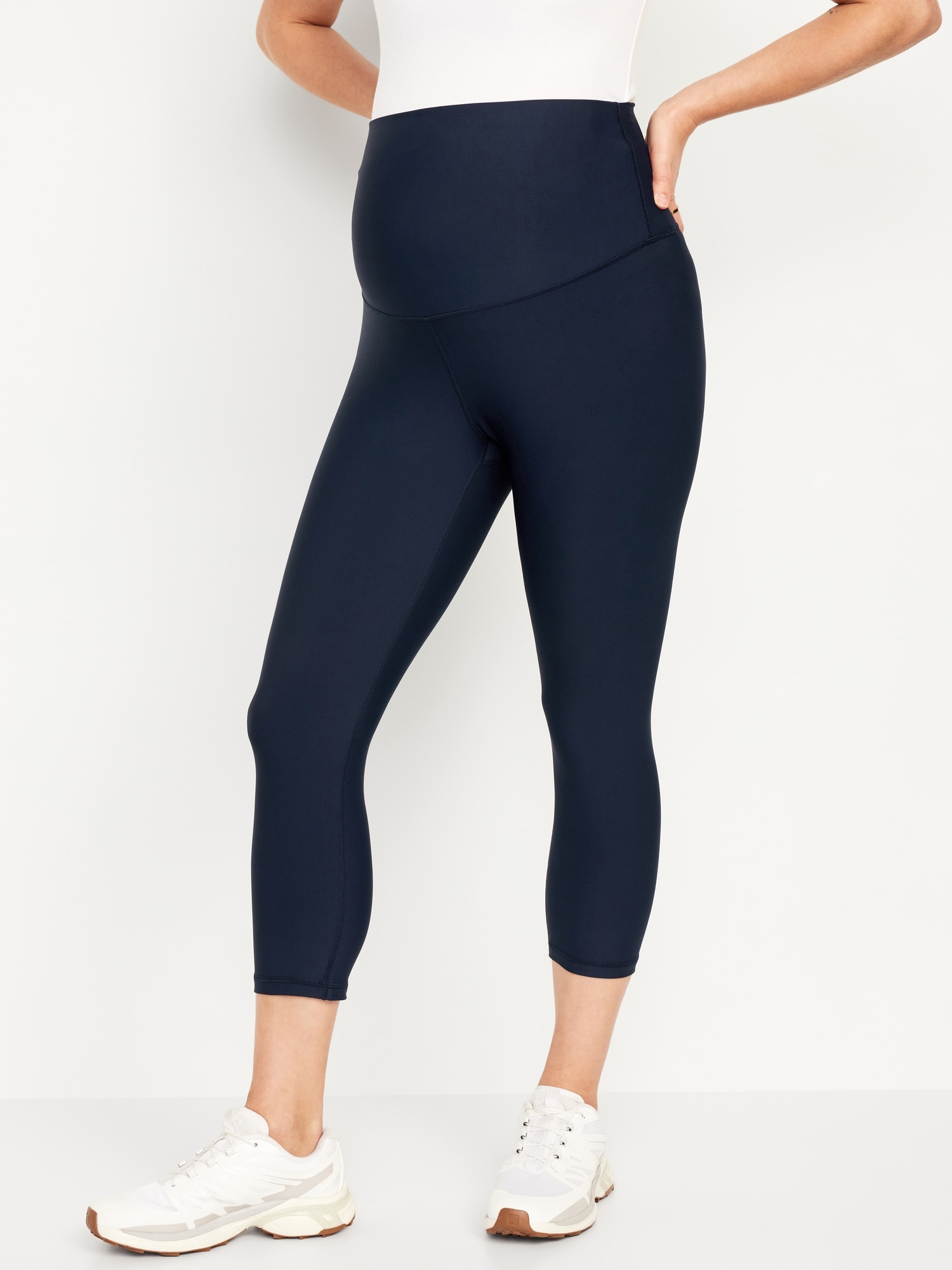 Maternity Full-Panel PowerSoft Crop Leggings: Featuring PowerSoft, light compression with a peachy-soft feel.full panel stretches over belly, side pockets, go-dry wicks moisture, #962148