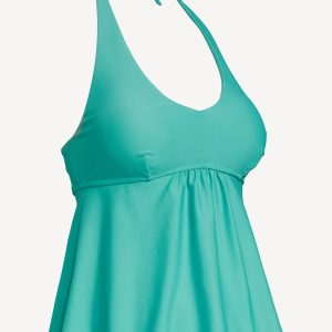 Maternity Halter Tankini Swim Top: deep v-neck, halter ties, removable molded cups, shirred detail at front, #719557