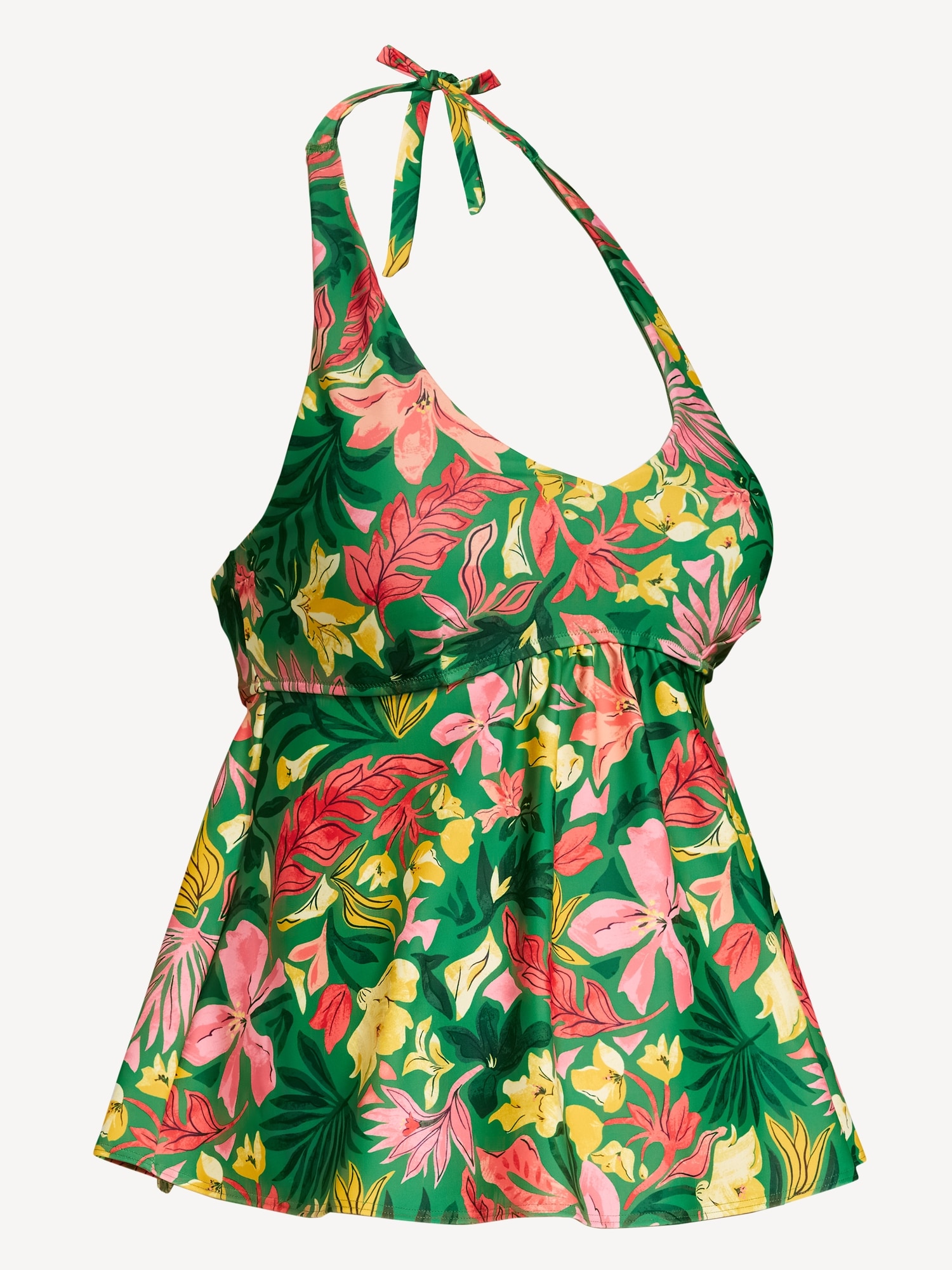 Maternity Halter Tankini Swim Top: deep v-neck, halter ties, removable molded cups, shirred detail at front, #719557