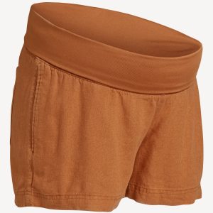 Maternity Linen-Blend Pull-On Shorts — 3.5-inch inseam: foldover jersey waistband, on-seam side pockets, back patch pockets, easy pull-on style, #746574
