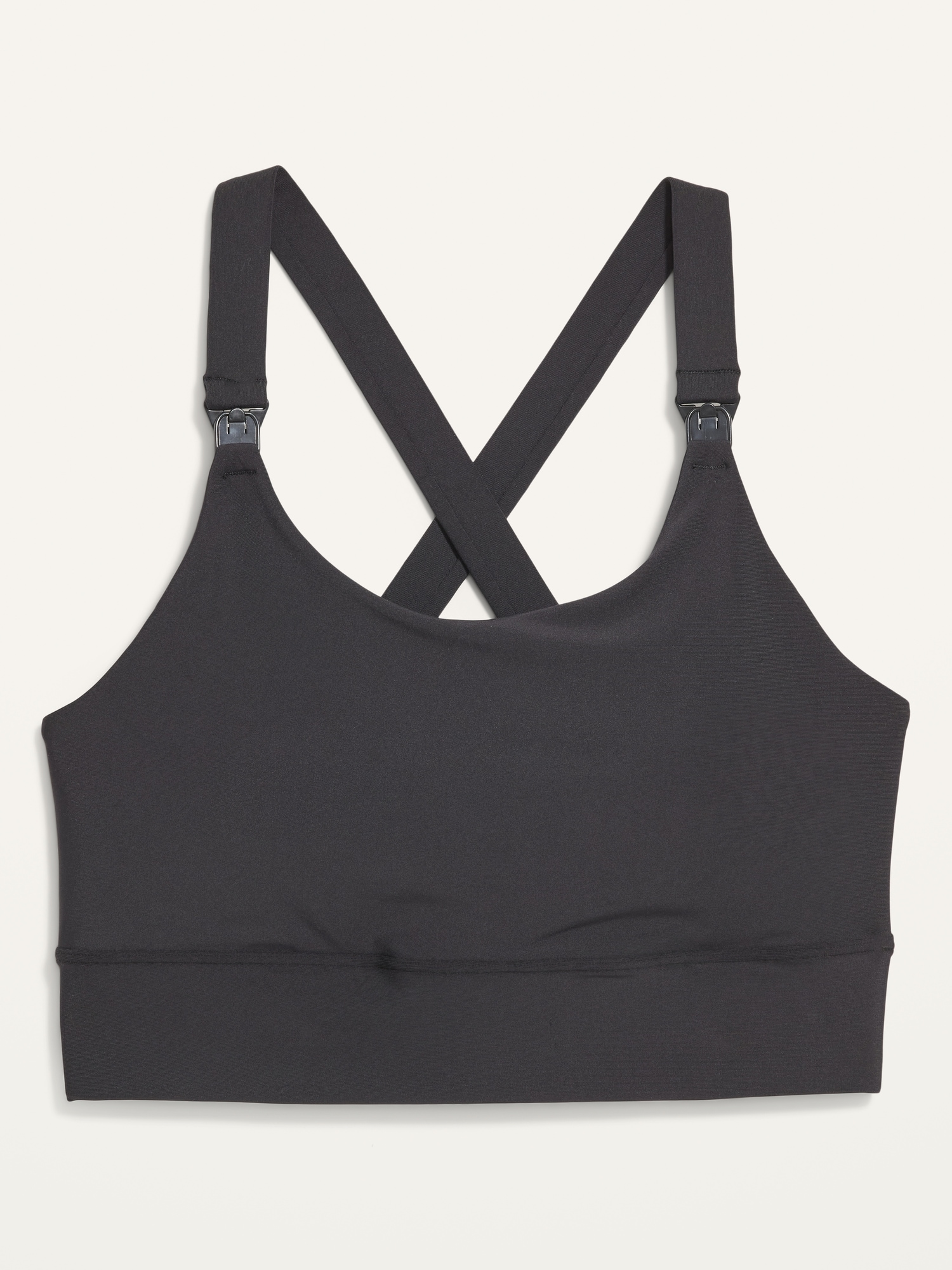 Maternity PowerSoft Nursing Sports Bra: Power up your workout in our PowerSoft sports bra. Light compression fabric meets a smooth, peachy-soft feel.adjustable shoulder straps, detachable clips for convenient nursing, scoop neck, wide shoulder straps cross at back, shaped cups, removable pads, elastic hem, go-dry wicks moisture, #787600