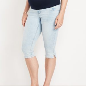 Maternity Rollover-Panel Slim Capri Jeans: versatile rollover panel, faux fly, scoop pockets at front, patch pockets at back, #771533