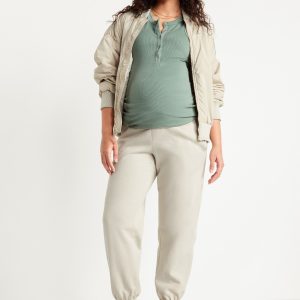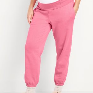 Maternity Rollover-Waist Jogger Sweatpants: rollover waistband, on-seam side pockets, a “watched all 5 seasons today” kind of pant, elasticized leg openings, pull-on style, #612127