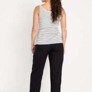 Maternity Rollover Waist Linen Pant: rollover waistband, faux fly, slit pockets at sides, patch pockets at back, #719649
