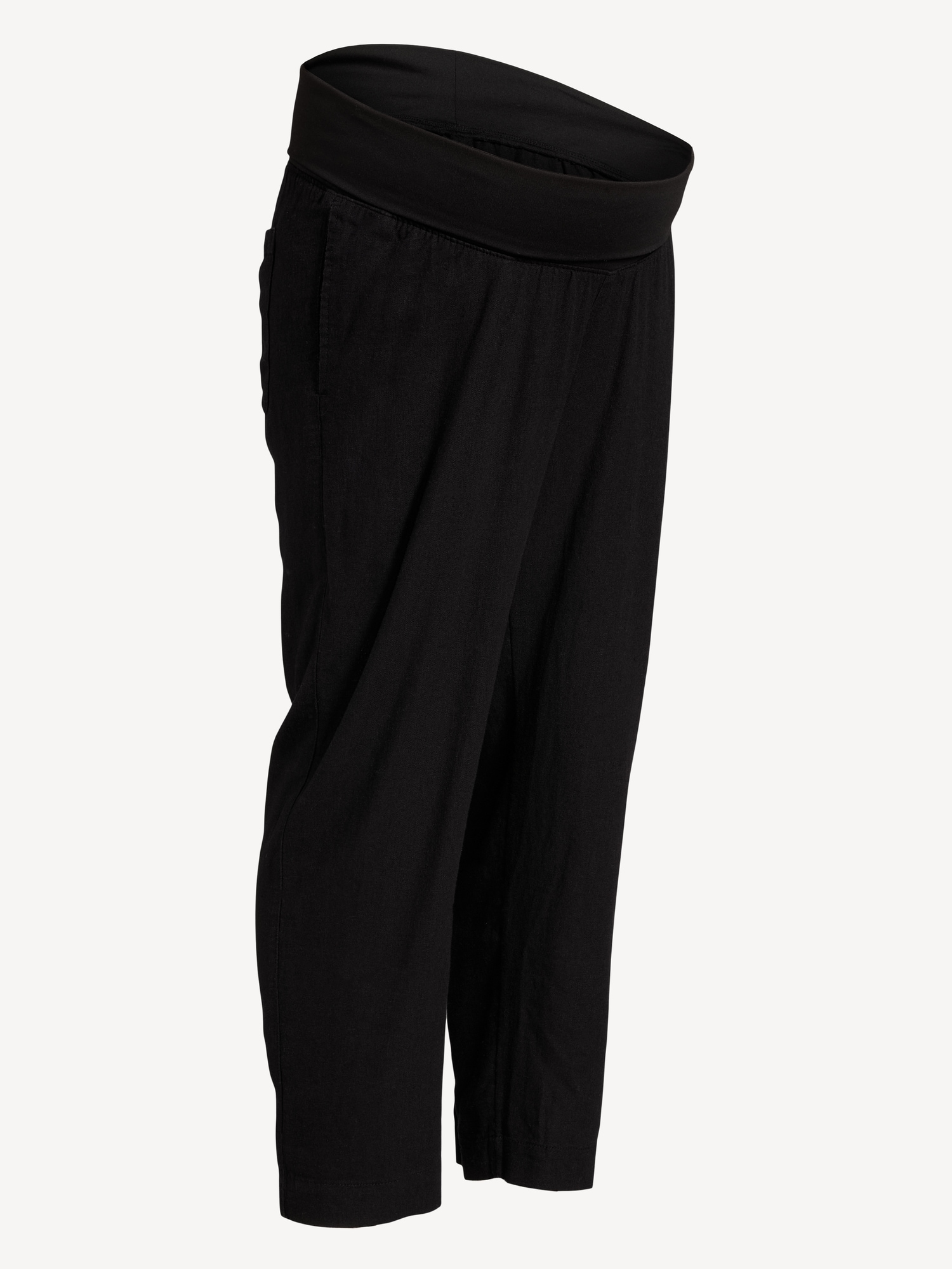Maternity Rollover Waist Linen Pant: rollover waistband, faux fly, slit pockets at sides, patch pockets at back, #719649