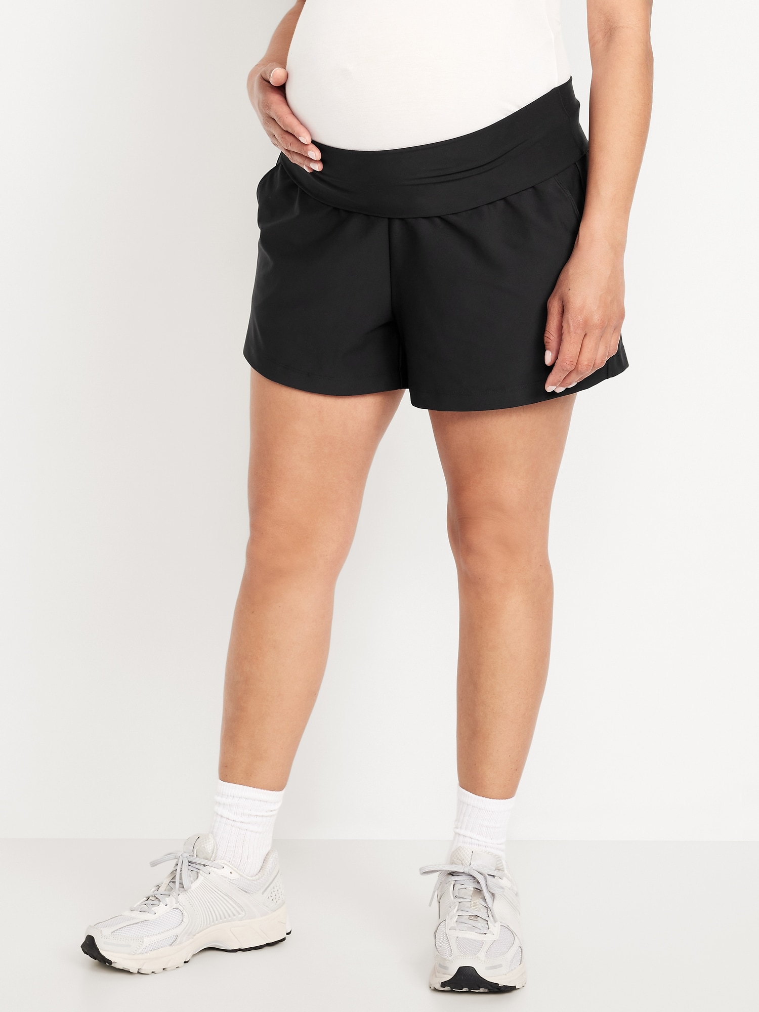 Maternity Rollover-Waist PowerSoft Shorts — 3-inch inseam