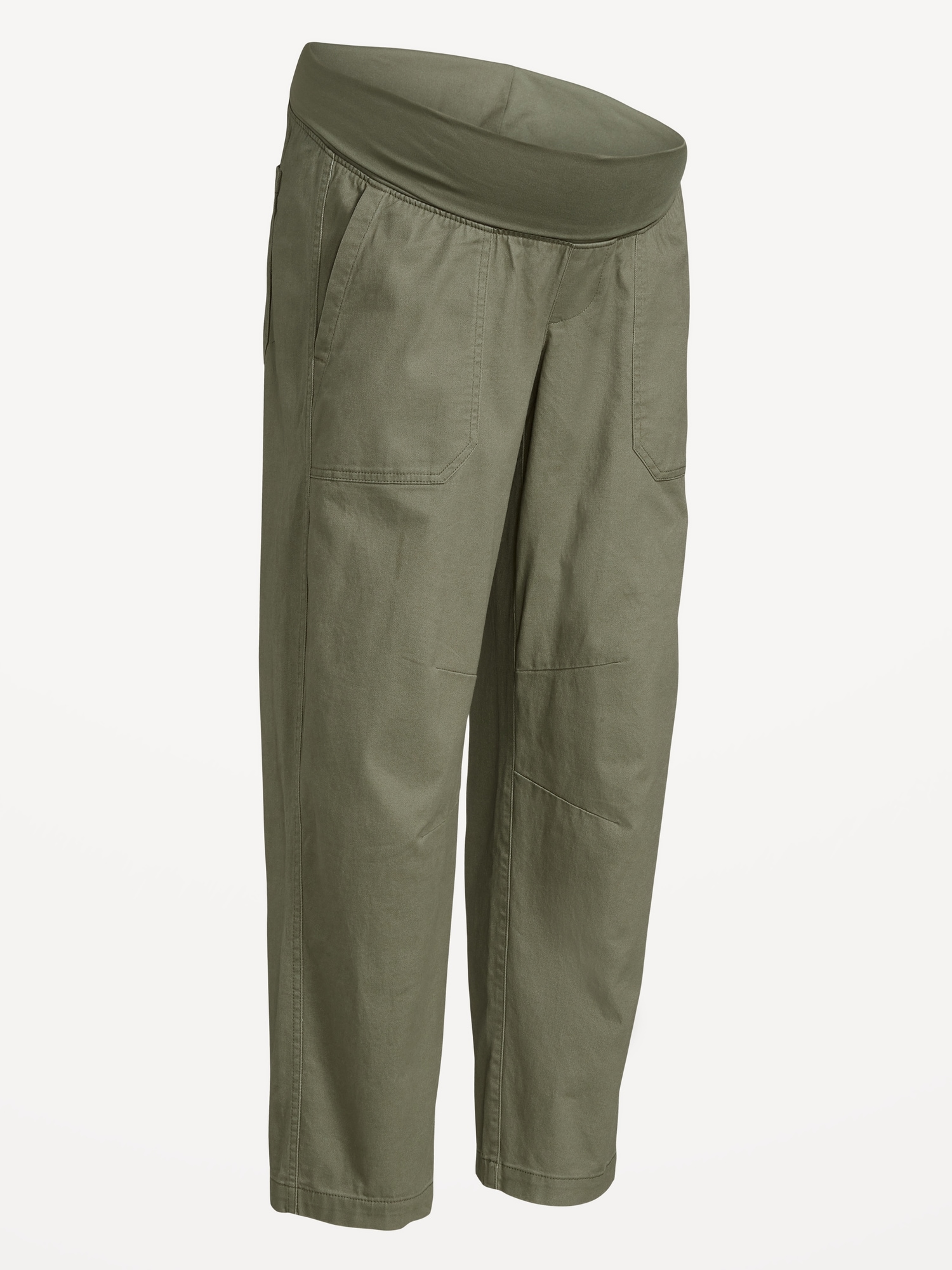 Maternity Rollover Waist Pulla Utility Pants: A comfy, polished pull-on with utility vibes.rollover waist, faux fly, front utility pockets, back patch pockets, hammer loop, #547631