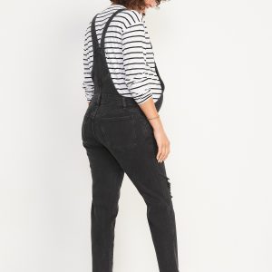 Maternity Side-Panel OG Straight Jean Overalls: Our OG Straight Jean Overalls? Think “mom jeans”…if your mom was a supermodel. Part ‘90s nostalgia, part new-normal comfort, served straight up 😎, Adjustable shoulder straps and metal button fastenings; Patch pocket at bib yoke., Banded waist, with built-in belt loops and discreet elastic side panels at the hips., Faux fly, with fading and whiskering to create a vintage, lived-in look., Soft, durable medium-wash cotton denim, with comfortable stretch., Never-Quit Shape Retention holds its shape and hugs in all the right places, wear after wear., These overalls are made with 5% recycled cotton. Less waste in the world 🌎, #759165