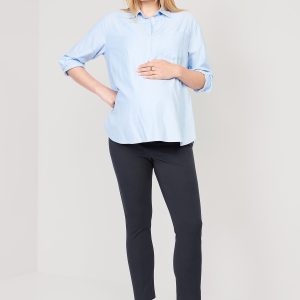 Maternity Side-Panel Pixie Ankle Pants: The Pixie pants you love, now in a fabulous fit & fabric., elastic side-panels at hips, faux fly, faux welt pockets in back, easy pull-on style, #572538