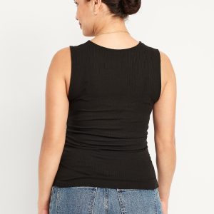 Maternity Sleeveless High-Neck Rib Top: high neck, sleeveless, shirred sides for a flexible fit, #826397