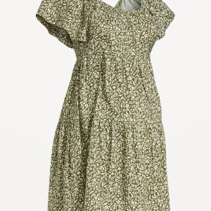 Maternity Square-Neck Mini Dress: square neck, short flutter sleeves, tiered shirred seams, all-over floral print, #826484